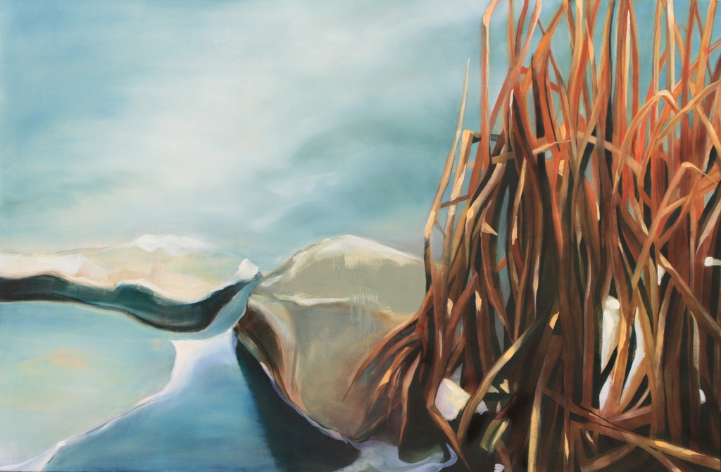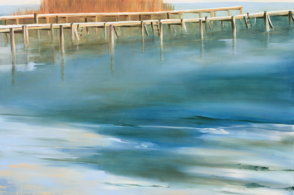 Der Blick richtet sich, wie so häufig in meinen Arbeiten, auf Unscheinbares und Alltägliches. Mich faszinieren die Beschaffenheit der Dinge, ihre Strukturen und ihre schlichte Schönheit. Fotografisch anmutende Gemälde und malerische, zeitweise abstrakt wirkende Fotografien werden durch Studien, in denen ich die Natur interpretiere, ergänzt. Die einzelnen Szenen sind Impressionen eines Spaziergangs: Gestade, Wasserspiele, Pflanzenteile und Holz in verschiedenen Formen.