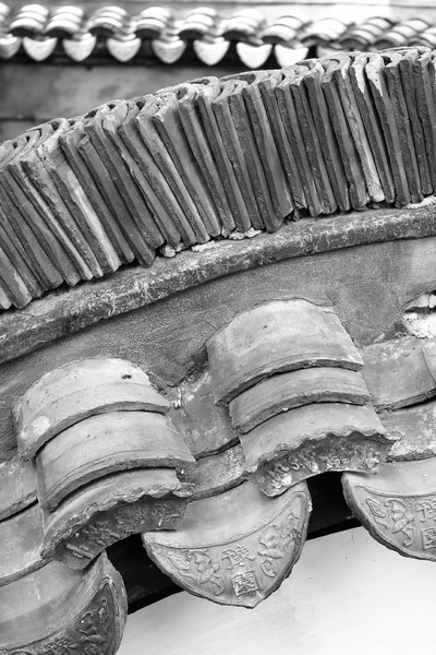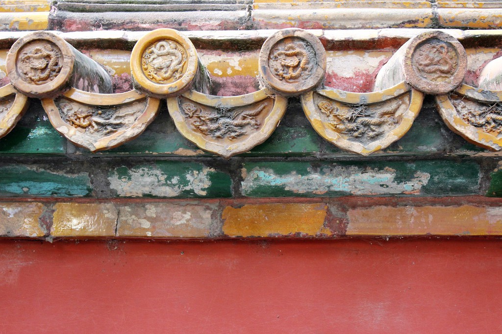 Die Bilder im Foyer muten wie ein Spaziergang an. Man betritt die Stadt durch das kaiserliche Tor, sieht wieder kunstvoll gestaltete Ziegel – hier eindeutig an den fünf Drachenklauen erkennbar die kaiserliche Stadt - und geht über holprige Wege, die das Glück scheinbar zu Füßen legen wollen. Hinüber zum Tempel, in dem die Räucherstäbe die Wünsche und Hoffnungen gen Himmel tragen, durch das gut bewachte Tor. Hinaus, um zu staunen, versuchen zu verstehen, die Rätsel zu entschlüsseln.