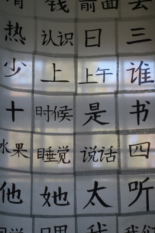 In meinen drei Jahren in Shanghai habe ich es tatsächlich nicht geschafft die HSK 1 Prüfung abzulegen. Gründe? Vielleicht Zeitmangel - so viele andere interessante Dinge zu erleben in der Zeit, die ich für Vokabel Lernen verwendet hätte. Vielleicht Angst vor Frustration - bei dem nicht-Verstehen der, im starken Shanghaier Dialekt zu erwartenden, Antwort. Ursprünglich war ich fest entschlossen, die Sprache zu erlernen, schon aus Höflichkeit und Respekt gegenüber meines Gastlandes China. Im Laufe der Zeit mochte ich es jedoch, ‚außen vor‘ zu sein, nicht alles verstehen zu können und zu müssen. Das Banner anzufertigen, sich mit den Schriftzeichen auseinanderzusetzen, fühlte sich wie eine kleine Strafarbeit oder Buße an, entschuldigt zwar nicht meine Lücke, gibt meinem Scheitern jedoch eine andere Gewichtung.