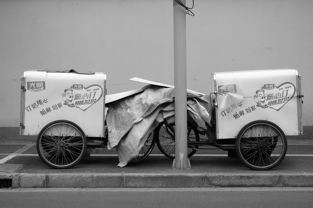 Viele Situationen muten sehr einfach und tradiert an. Manche Szenen erzählen ihre Geschichte ganz offen, andere haben ihre verborgene. So die Lastenfahrräder, mit denen jeden Tag kostenlose Milch an alte Menschen in Shanghai verteilt wird. Oder der Blick auf zwei Herdplatten. In China leben noch immer sehr viele Familien auf engstem Raum und müssen sich eine Gemeinschaftsküche mit mehreren teilen. In diesen Küchen richten sich die Familien jeweils ihre eigene kleine Kochgelegenheit ein.